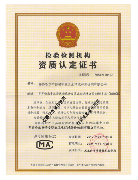 齊齊哈爾市怡安職業(yè)衛(wèi)生環(huán)境評(píng)價(jià)檢測(cè)有限公司